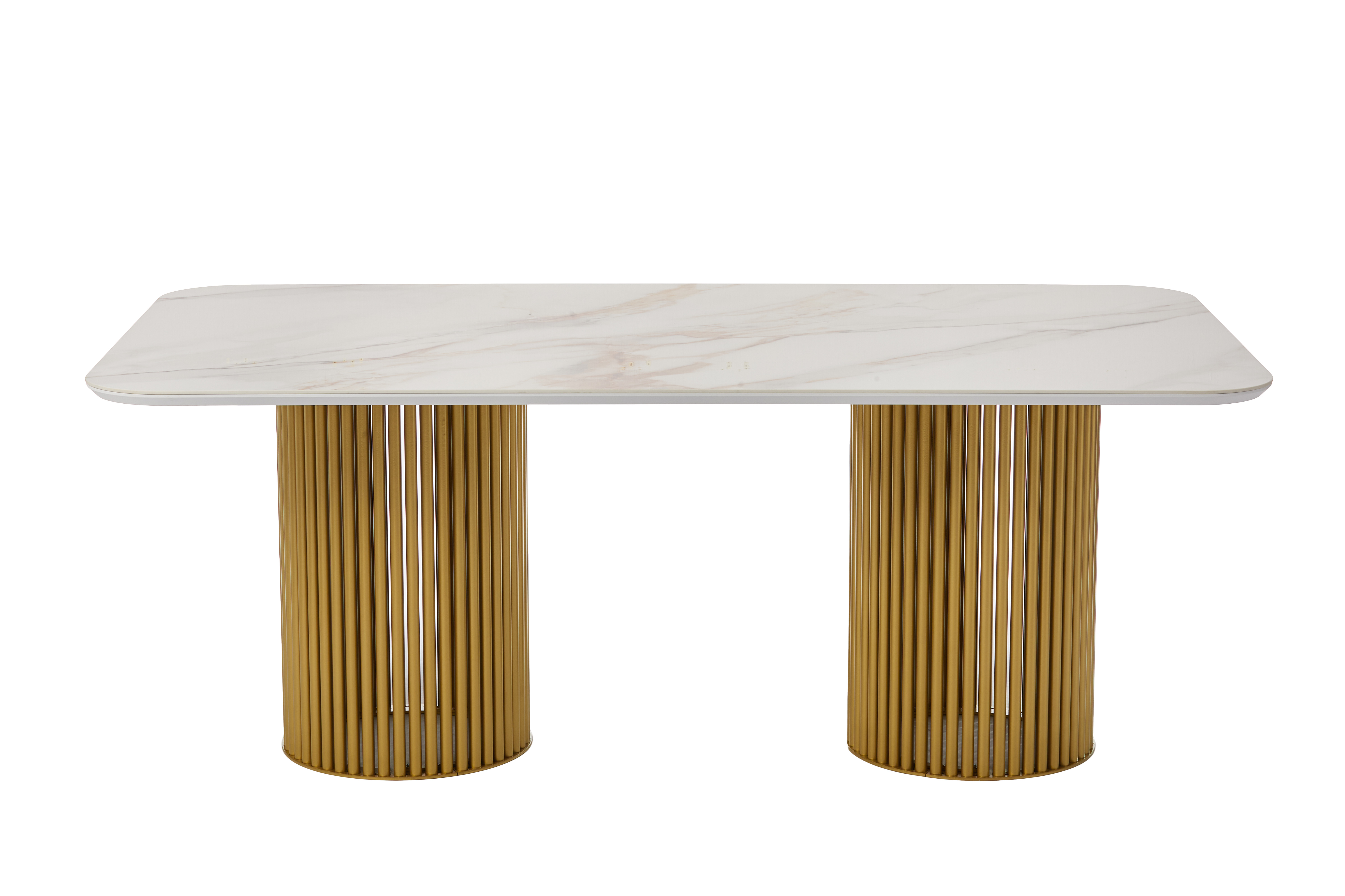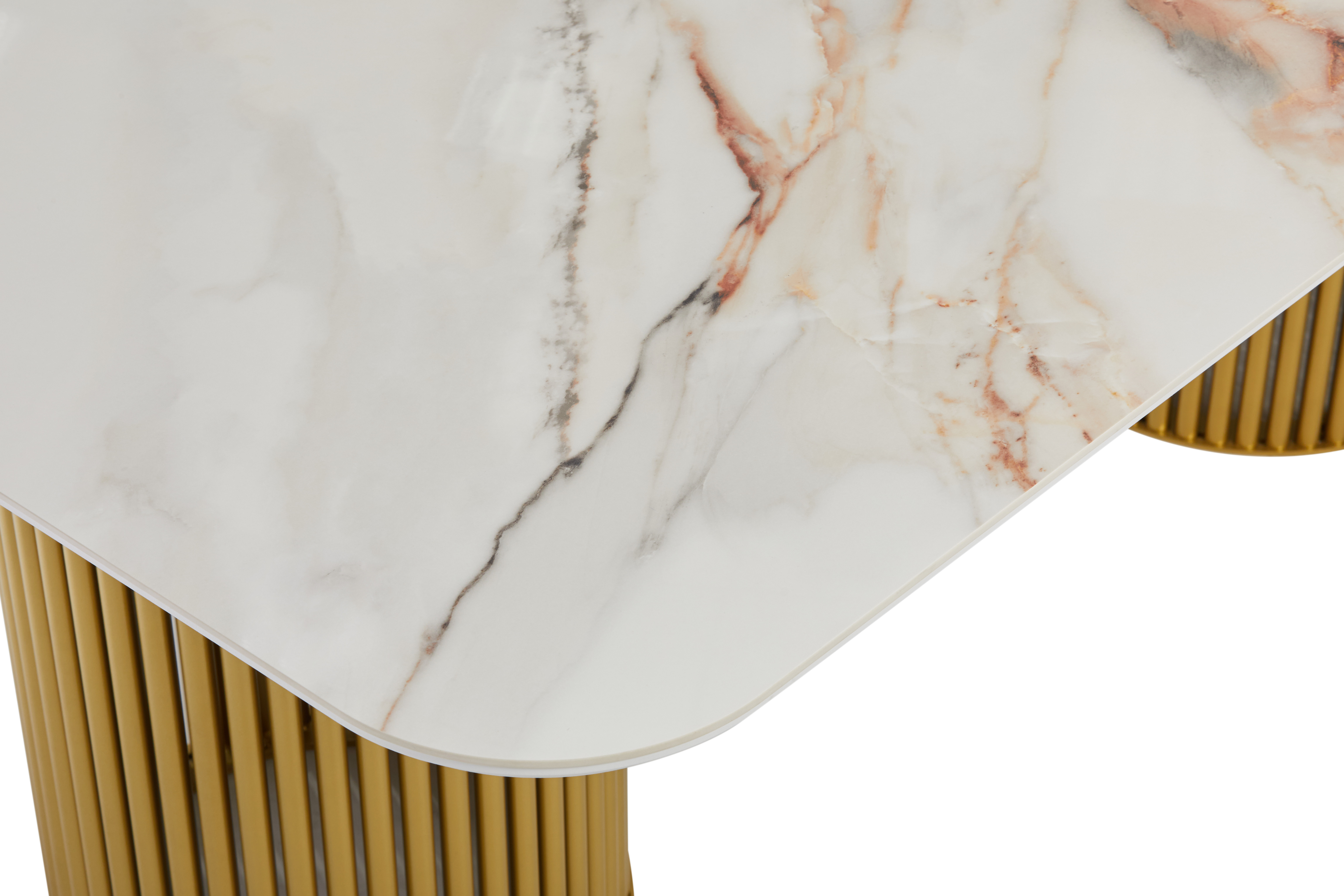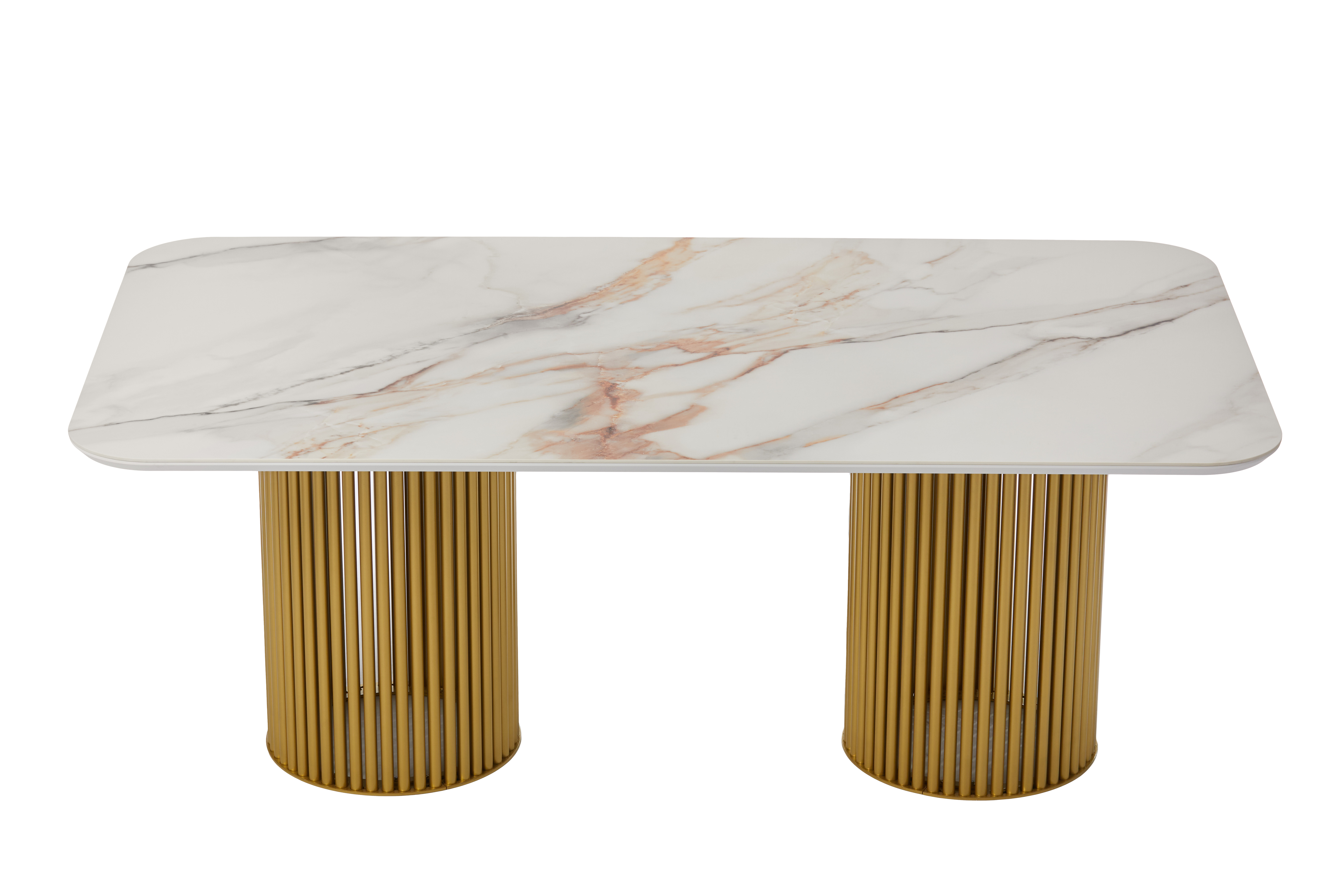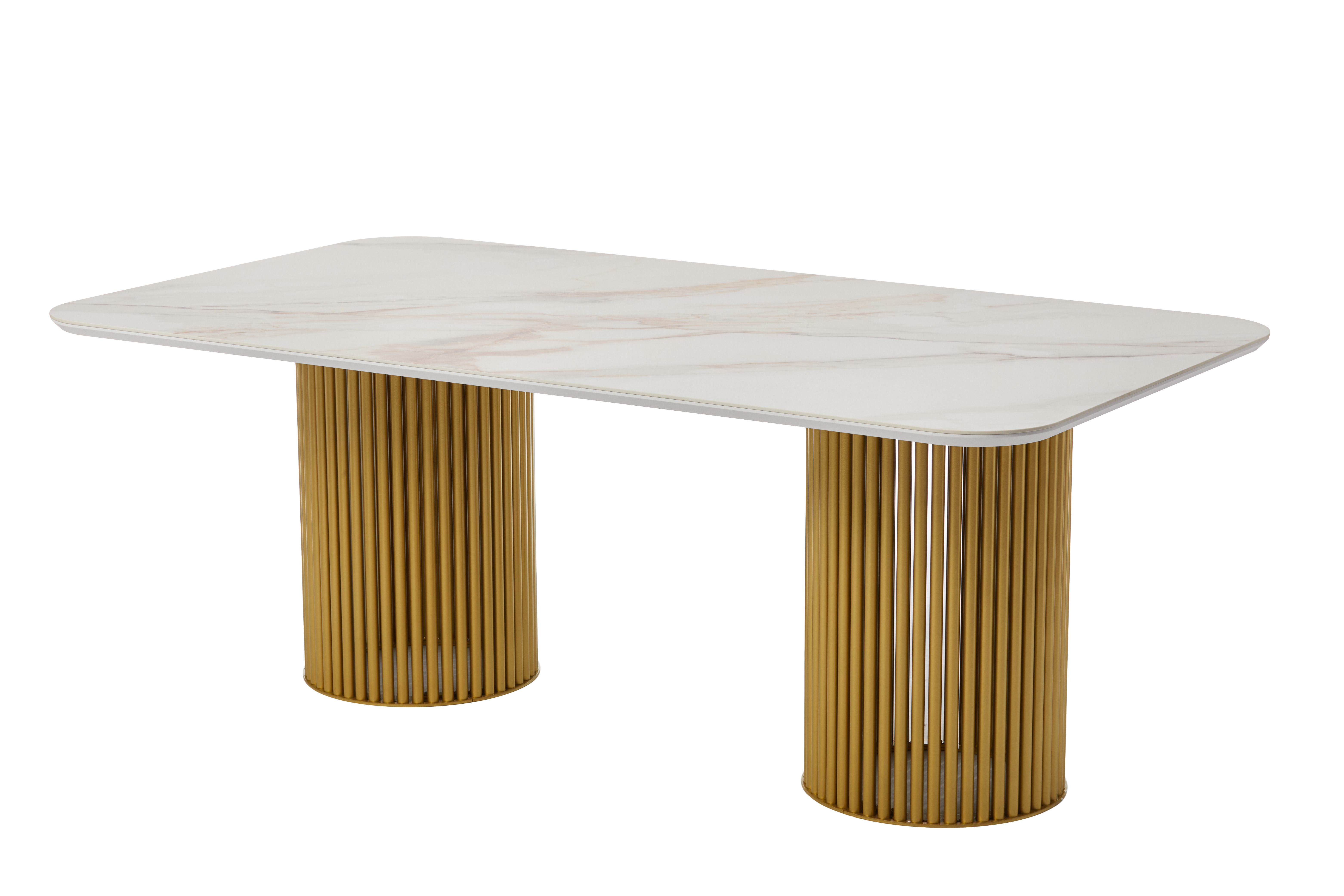 Стол прямоугольный АСКАР-200 200х110 золото/Бельдия Белый Глянец Премиум Кер